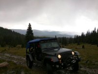 That connects up to Slide Lake where we really started getting rain and hail (August in the Rockies). That made the trail a bit more interesting. The Jeep handled it really well though.